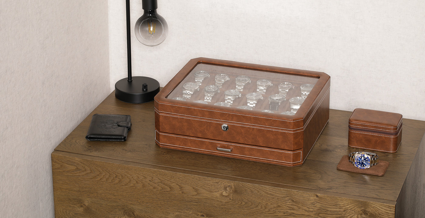 Every piece in our collection begins in California, where our founder, a former watch designer, draws on years of horological expertise to create designs that balance timeless elegance with modern functionality. Our watch display cases and travel cases are then meticulously handcrafted in China by skilled artisans, whose dedication to detail and precision ensures each product embodies both sophistication and durability. By partnering with these craftsmen, we’re able to keep manufacturing costs low while still working with makers who truly care about the quality of every piece they produce. We are not hiding, nor are we ashamed, that our goods are made in China, because it is there that we’ve found some of the finest craftsmen in the world, perfectly suited to this work. The result is a seamless union of California design sensibility and masterful craftsmanship, made to protect, showcase, and elevate your timepieces.
